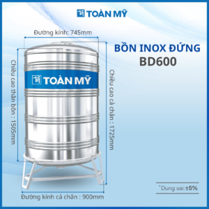 Bồn nước inox Toàn Mỹ được chế tạo trên dây chuyền công nghệ hiện đại, đáp ứng tiêu chuẩn khắt khe, mang đến giải pháp lưu trữ nước tối ưu cho hộ gia đình, khu dân cư đến nhà máy, trường học…